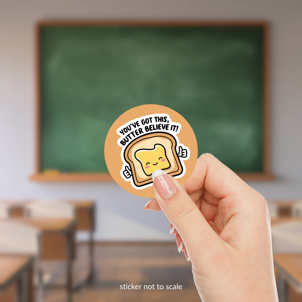 | Choose Your Sticker | Bee-Lieve in Yourself, Bravocado, Butter Believe It, Do-Nut Give Up, Egg-Cellent Work, Goal Digger, Keep Calm & Carrot On, Leaf your Worries Behind, Taco-Bout Success, Stay Pawsitive, Success is Brewing, You're Doing Grape, On A Roll, One In A Melon, Pear-Fect, Teariffic |